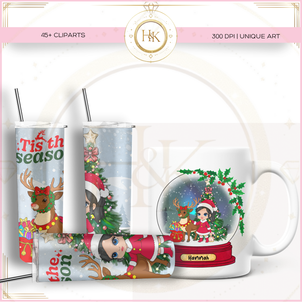 π Christmas Girl & Reindeer Clipart Bundle | 45+ PNGs π