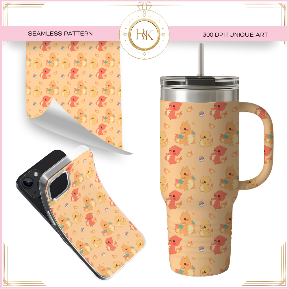 Charmander/Charmeleon/Charizard Evolution Seamless Pattern | Pokemon | PNG