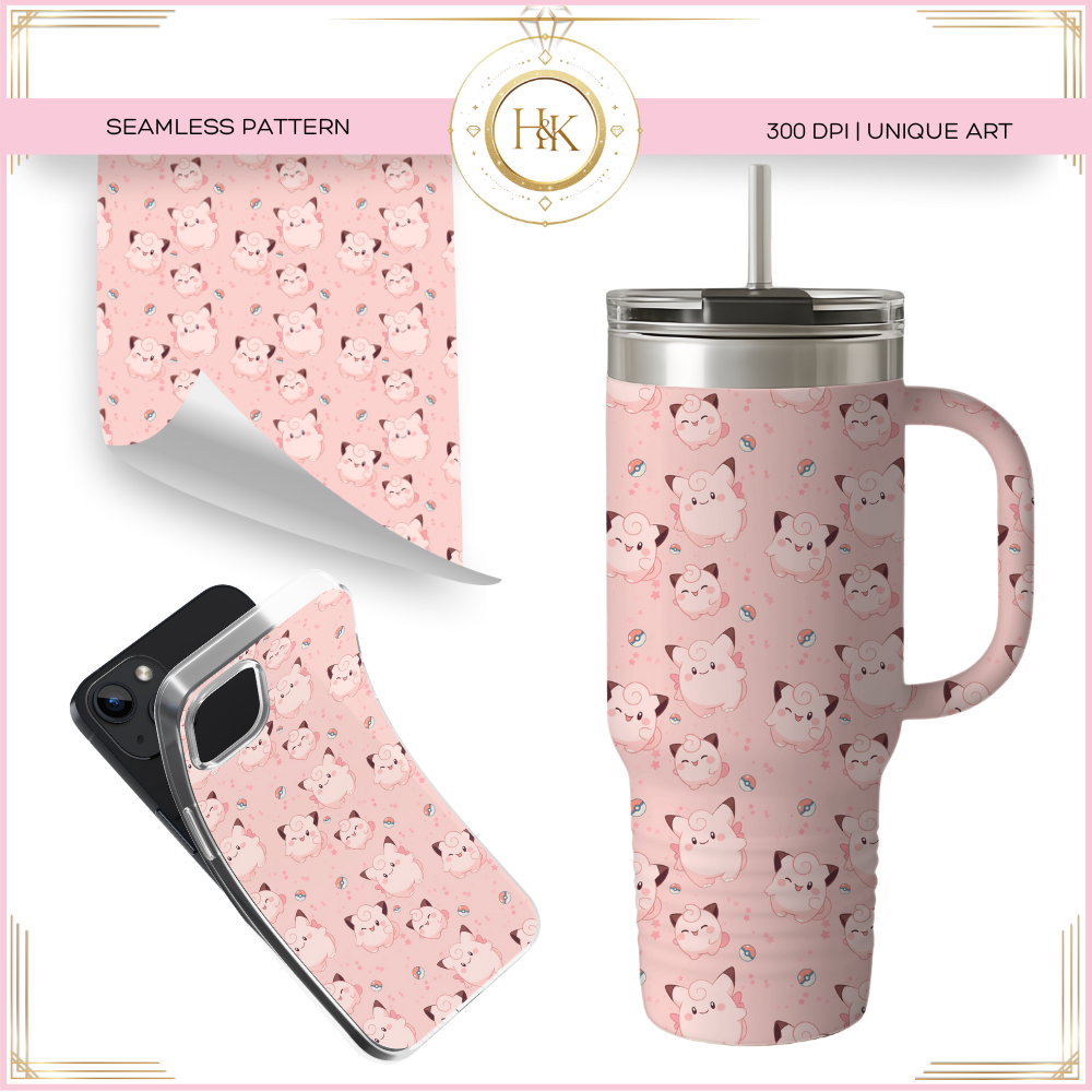 Cleffa/Clefairy/Clefable Evolution Seamless Pattern | Pokemon | PNG